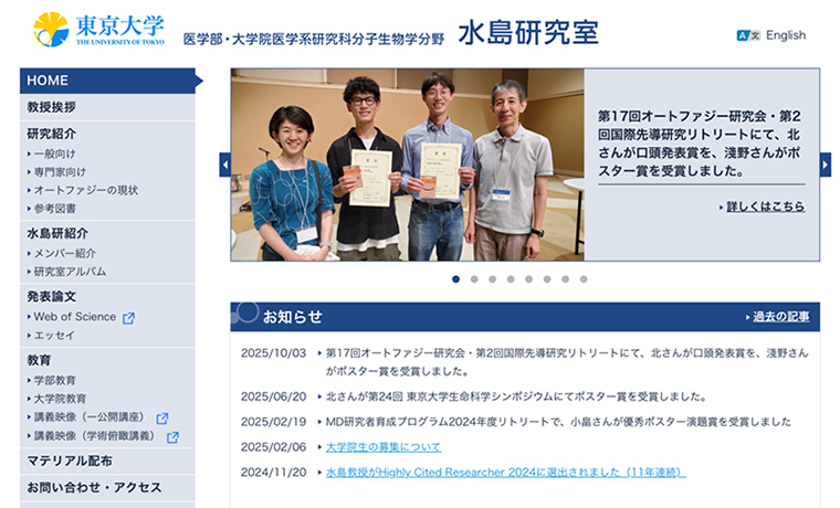 2016年にノーベル生理学・医学賞を受賞した大隅良典氏の活動を支えてこられた水島昇先生の研究室。すでにさまざまな賞を受賞されています。