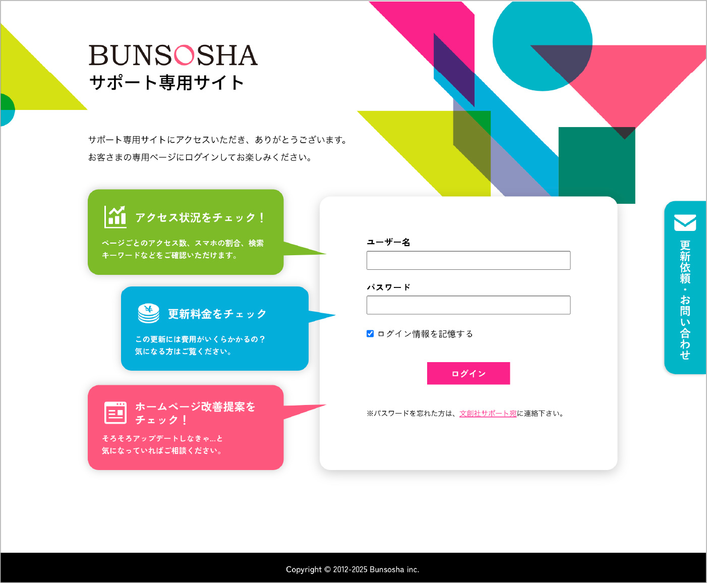 リーズナブルな月額料金でベストなサービスを提供する「サポートプラン」への加入をぜひご検討ください。